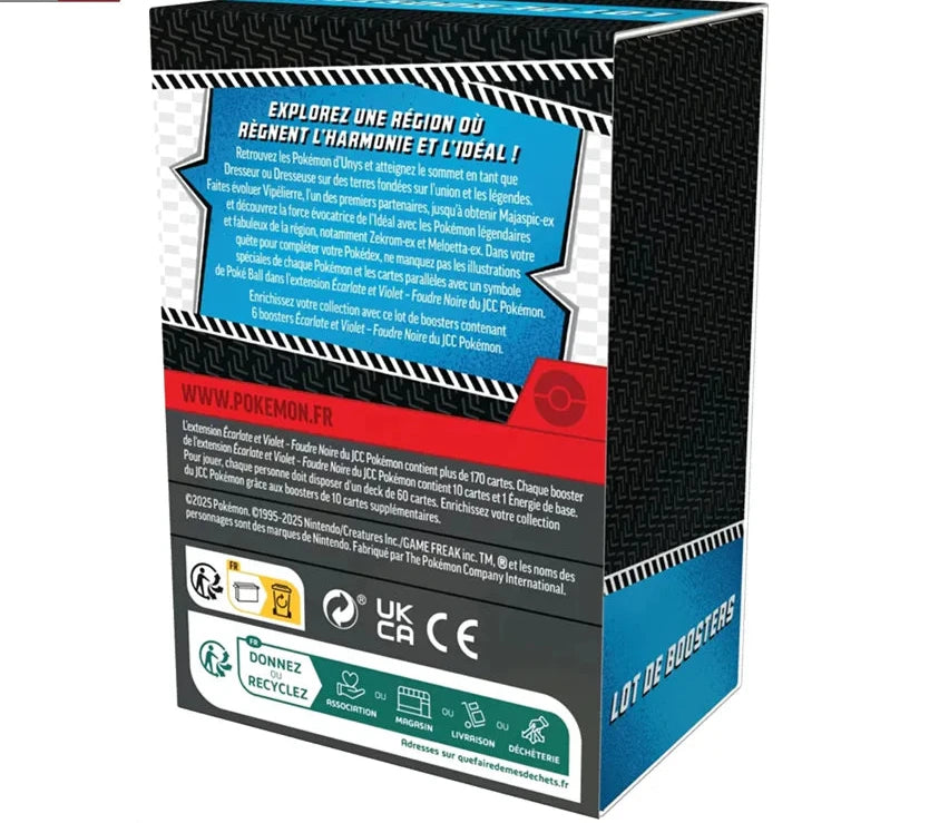Plongez dans l’univers intense de l’extension Écarlate et Violet : Foudre Noire avec ce bundle exclusif de 6 boosters.